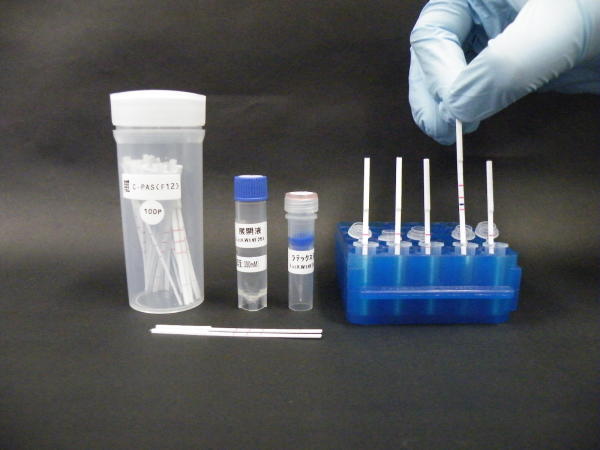 C-PAS, the core product, is membrane strip which complementary tags are printed on. It is used in STH (Single-stranded Tag Hybridization) method (Patented in March 2015). Our company sells to kit manufacturers this C-PAS as a raw material of the diagnostic kit as a B to B business. <Advantage of C-PAS> ・Multiplex (Maximum 12 target can be detected simultaneously) ・Versatile(Even if the target is different, C-PAS itself can be used by simply changing the primer) ・Detected in 10 min. (Add coloring agent after PCR and insert C-PAS. 10min later blue line can be visually confirmed)
